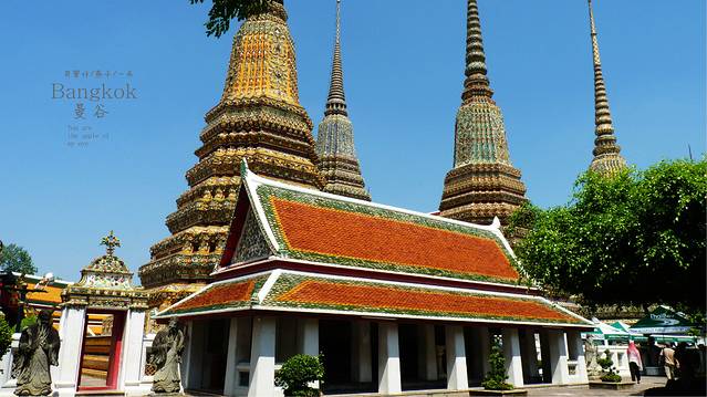 相比与大皇宫,卧佛寺游客要少很多,而这里的寺院可以看出与清迈,大城建筑风格的不同,