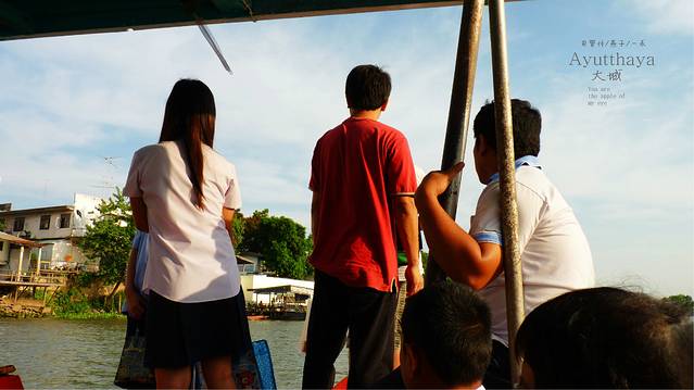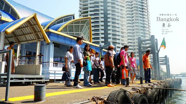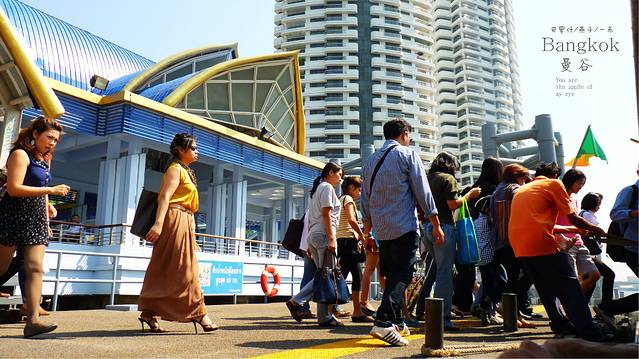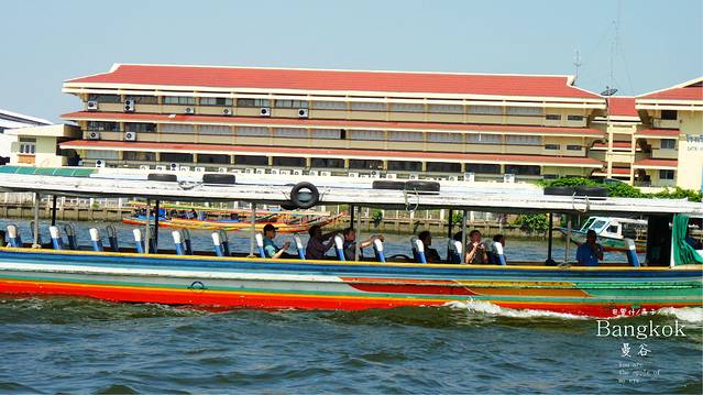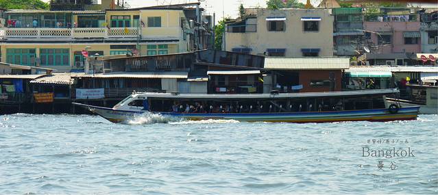 曼谷人出行或上班也喜欢坐这种公交船,因为又便宜又快捷,而且不会堵,船票是15b,上船后再买票也行,我们要坐到N8,这一站有卧佛寺和大皇宫,大皇宫现在的票价是500B,贼贵,和我们的故宫差不多情况,人挤人,我们三人一致决定打死也不去,又热又挤又贵,我们为什么要去,我们不凑这份热闹,就让喜欢凑热闹的人凑去吧,但郑王寺我一直想去,可天这么热,郑王寺是要登塔的,卧佛寺是最方便的,到N8再看吧,公交船,即然叫公交船,就会象公交船的样子,当然是又便宜又挤,船上有坐着的,站着的,反正满满一船的人,但在船里却没感觉到热。