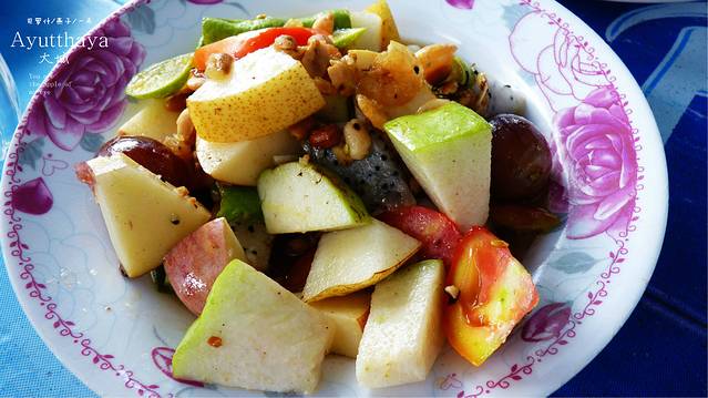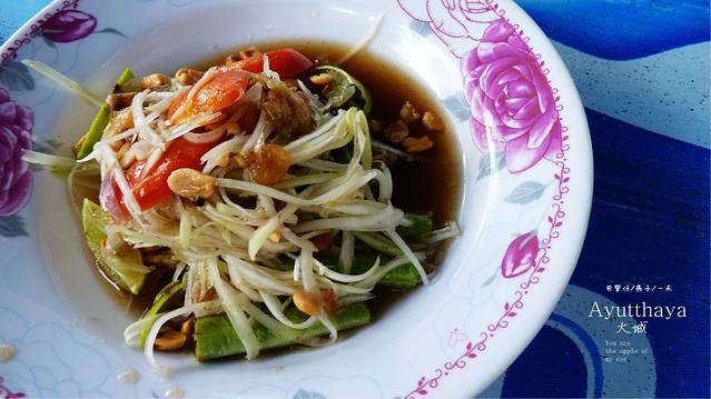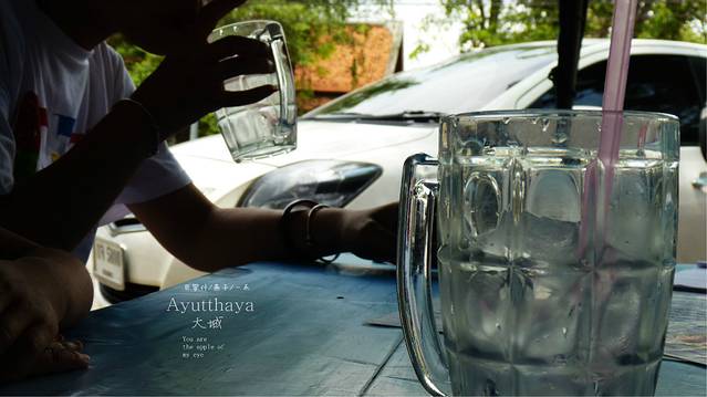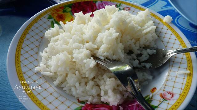 离开柴瓦塔那兰寺,我们肚子饿了,在这里真的很热,我们试着找一家好点的,有冷气的地方吃东西,摩托车开的飞快,但始终没找到,好吧,就在一个路边滩停下,路边滩老板是一对老年夫妇,先上两杯冰水,不要看这饭和菜难看噢,告诉你们好吃的不行,当然也有我们肚子饿的原因吧,但这买相极不好看的饭菜,真是非常合味口,我们不会点,老板也不会英文,,我们只好指着边上桌子上点,边上桌子坐着一男两女,她们非常热心,其中一女生特意还过来,帮我们点餐,点她认为这个小摊拿手的饭菜,泰国 热心的人很多,但我觉得曼谷 除外吧,因为网上评价曼谷不是很好,我们遇上的曼谷也没象岛 ,清迈 ,PAI,大城 这些地方的人们纯朴和热心
