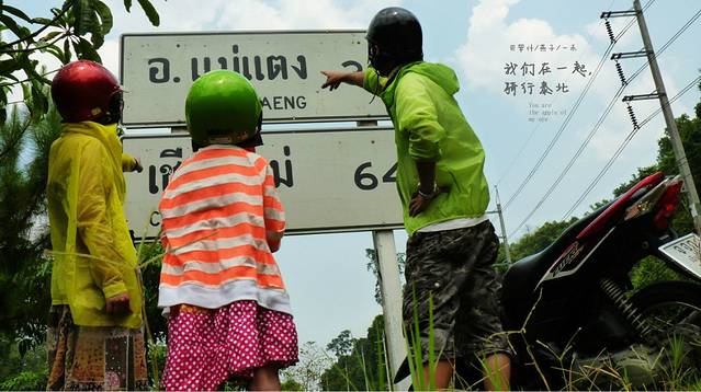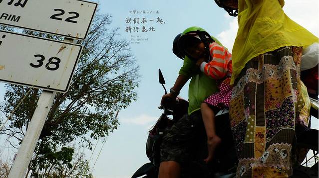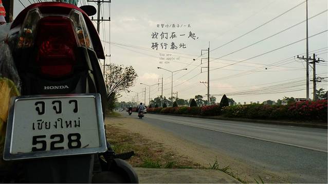 停住继续,离ChiangMai只有38公里了,今天我们专们找指示牌停下来休息,看着这里的天和路结合的真是完美,我朋友曾经说过这样一句话,如果行走贡嘎是痛苦的,他想一直这么痛苦的走下去.而这次我们一家骑行泰北从出发到到达到返回,一直是那么的幸福