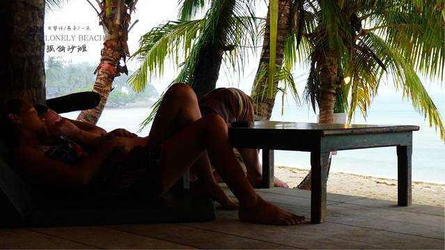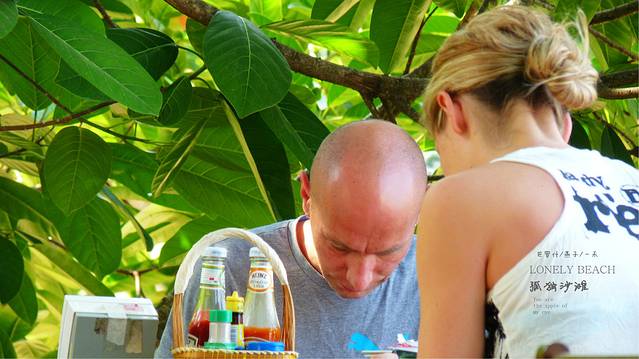骑大象会有来回接送服务,但我们想他们来接我们,但送我们到白沙滩的住处,这让我们昨天和友好的店家比划了好久,才比划明白,这时就和风子碰到了,他们这次是他的战车上次开来留在曼谷几个月了,过来开走,顺路来象岛沙滩躺一下,然后沿着泰国老挝,回国内,又说偏题了,和店家比划了好久,才比划明白,这样我们可以每人省下70B的孤独沙滩到白沙滩的钱了,