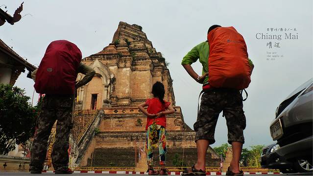 由于买票时间的耽搁,我们到塔佩门已8点多了,本想清晨天蒙蒙亮,我们象鬼子一样进古城,横穿古城,看契迪龙庙,帕邢寺,三王, 到达塔佩门已经有一群人们在做着泼水节的仪式了,穿过人群进入古城,还好,就塔佩门人多,里面的人还没起来呢,街上的人几乎就我们三人,依稀有路过的人,这样最好,不然,我们一定会成为湿人的,我们还背着行礼呢,我猜一定是泼水节前两天就开始了,昨晚的狂欢让大家玩的累,所以全城的人会起的晚,