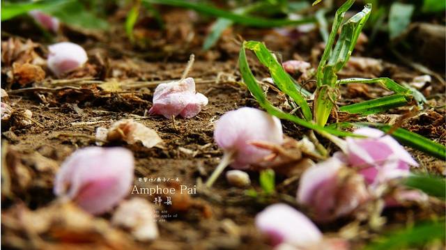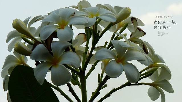 夕阳西下时,我们开到美萍河边,走上黄土的河堤,河水有点黄,遥望着远处的美萍酒店,那是甜歌天后邓丽君住的地方,曾经她的歌温暖着几代的中国人,而她选择在这里停止了她的脚步,看着这里的天空,和这条美萍河,河畔开着美丽的鸡蛋花,我想她是幸福的,这么美的清迈,,很适合在这里停住,就象一个登山者永远的 留在了珠峰一样,她们都是幸福的.