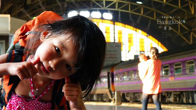 40分钟左右,女儿醒了,一醒来的第一句话是好热呀,是呀,老式的火车,满火车的人,坐着的站着的,谁叫我们买的是最廉价的车票呢,,好心让座泰国妇女早在上一站下车了,她们也是一家人,女儿望着窗外,我们要进站了,到达华兰蓬火车站现更名为曼谷火车站,