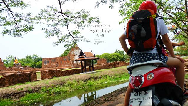 还好我们是一大早到达的大城,象一些从曼谷火车到大城的,我觉得一天游时间有点不够,走出崖差蒙空寺,我们的摩托车停在墙边,先拿出地图,我们合计去哪里,我觉得来大城,崖差蒙空寺和柴瓦塔那兰寺,是我们一定要看看的,但崖差蒙空寺是最东边,而柴瓦塔那兰寺是最西边,反正是开摩托,管他呢去柴瓦塔那兰寺