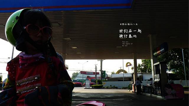 半个西瓜,也挂前头,因为女儿现在是坐在我和媳妇当中,前面就空出来放背包和西瓜,还有车子下面有两个格子,女儿习惯不穿拖鞋坐车上,所以她的拖鞋放里面,另一格放大瓶水,每当停车下来,先要把女儿拖鞋拿出来给她,继续开了,我们该加油了,叫女儿和媳妇看着两边有没有加油站,我们要加油了,女儿倒看到好几家7--11,711是世界上最大的便利店特许组织,而在泰国,到处都是7-11便利店,一家独大,价格便宜,很是方便,看到加油站,我们加了60B就加满了油,一定要加满,不然开到荒山野岭,没油了,就完蛋了,每个泰国人总是笑迎送我们,我们继续骑行