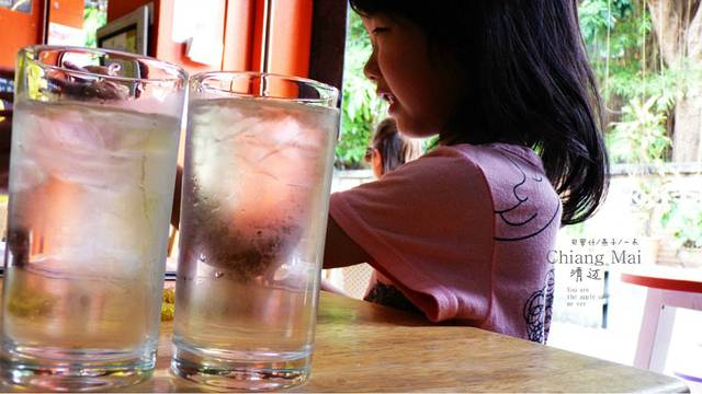 到了SS宾馆,本来他们宾馆边上有租摩托车的,但租摩托车的店关门了,因为泰国新年很多店放假,SS老板娘很好,在地图上给我们指出了离我们最近的有租摩托车的店,好吧,我们徒步过去,走出门口,我们先到我们对门的大商场里吃芒果饭,不得不说这里,芒果饭30B,人民币才6块钱,便宜,要了两份,还要了份菠罗汁,老板娘真好,看我们三人喝一杯,我们喝完一杯又免费给我们倒了一杯,这些可是现场打出来的噢,太好喝了,最后老板娘看我们的那份享受的神情,又给我们免费倒了半杯,太好了,走出商场我们徒步到租摩托车的店,但街上开始热闹,泼水节又开始了,租摩托车的店不远,我们一会儿就找到了,谈好了价200B,去他们的储藏室里选 好头盔,不错,小孩子的也有,5年没开摩托车的我,可是有十几年的驾驶经验了,摩托车的油是满的,那么就是还他们时加满油就行了,带着媳妇和女儿直接开出热闹人群,向清迈大学进发,今天我们就是要远离泼水节,但在路上我们 还是不停的给人们浇的透心凉".啊........."