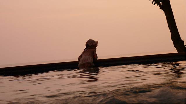 4月11号清晨,依然是我起的早,但今天女儿也起来了,让媳妇多睡会吧,一会她还要整理行礼,因为今天我们要离开孤独沙滩,一大早和女儿漫步在孤独沙滩,沙滩上的掉落的花儿,有小鸟,都是女儿的玩伴,她会自言自语的和这些动植物说话,当然还有她最爱的秋千,拍个视频记录一下,她坐在秋千上,我坐在椅子上,然后玩一下沙子,可结果视频里出现的是她直接拿沙子往我身上袭来,小坏蛋,,,边上的豪华酒店这里不仅有泳池还有小船,免费的,自已可以把他推下海,然后在海里荡起双浆.今天时间来不及,媳妇一定在收拾行礼了