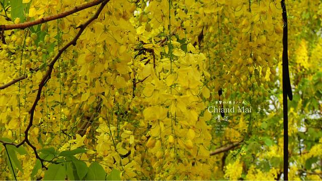 绕着这个兰纳风格佛塔走,这个季节,边上的这种黄色的不知名的树和佛塔,就象芒果汁和香蕉饼那么的让人舒服,不会吧,说风景我都会把吃说进去,我们家三人可不是吃货。