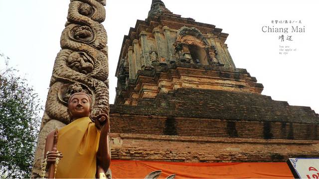 契迪龙庙,又叫大佛塔寺始建于15世纪初,1545年清迈发生一次大地震和大风灾,佛塔的尖顶一夜之间塌毁,为清迈地位最崇高的寺庙之一。