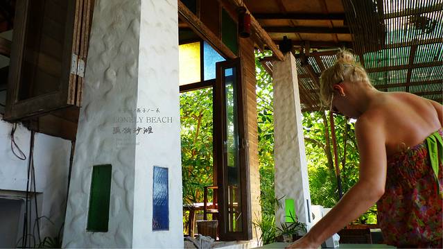 到达象岛,下船,我们的往返车船票是直接送我们到达酒店的,我们的酒店是在孤独沙滩,这里是背包客的天堂,是象岛比较原始的地方,同行的中国小夫妻想跟我们一起走,但我们走散了,上双条车,同车全是金发碧眼的老外,就我们三人china,象岛的路相当的陡和刺激,有时坡度达到60,70度,只剩尖叫了,很多人会租摩托车体验,但我们考虑到了女儿,放弃了用摩托车,但后来的清迈到pai,130多公里700多弯道,也没比象岛不刺激呀,20,30分钟我们到达Nature Beach Resort我们的背包客酒店,和同车人相互微笑来告别这段小小的车程,我们三人进入我们的背包客聚集地,Nature Beach Resort,不愧是背包客的天堂,眼前的景象就是我们背包客要来的地方,海浪沙滩,一群人踢着沙滩足球,这里的气氛我们太喜欢了,三个人,两个背包,先去前台和我们交流的是一个lady boy.工作人员带我们到我们的小屋,我们的背包客酒店两边是豪华的酒店,有泳池,这里的服务员很好,和女儿海里游了再进他们的泳池也不会象我们祖国的豪华酒店那样厌恶和不欢迎我们,他们总是对我们抱着微笑,这样真的很好