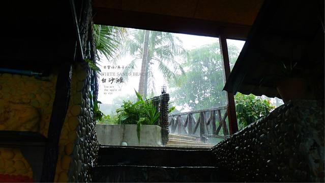 理好东西,带好浮潜工具,我们在海边草屋等来接我们的双条车,下起大雨,有情人彼此相依的躺在草屋的看雨,孤独女王一个人躺着看海,雨越下越大,可我们的车还是来了,本想今天就躺这儿了,草屋里的景象应会是一个孤独女王,一对有情人,还有我们一家子,大家看着这片孤独沙滩,