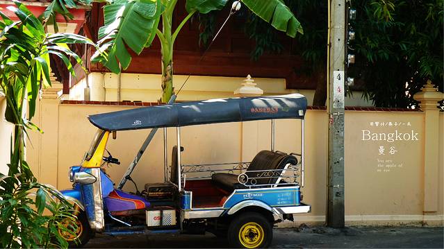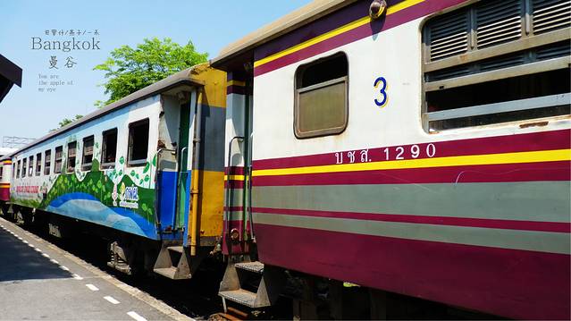 N4码头到曼谷火车站沿着小巷一直往上走,这里住着泰国华裔较多,边上的房屋能看到很多中国80年代的特色和元素,徒步20来分钟,然后和一群老外一起过一条马路,我们就到了曼谷火车站,拿回背包,买好火车票,去朗曼机场,