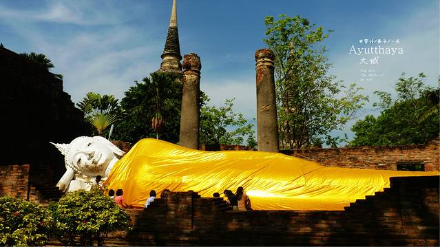 我地图上一看,妈呀,这里离我最爱的崖差蒙空寺(WAT YAI CHAYA MONGKOL)最近,太好了,其实我对大城最初的认识就是崖差蒙空寺,寺里的那一排排的佛像,让我想来大城的冲动,崖差蒙空寺建于西元1357年是大城王朝的创世主所建设,可以说是大城府最古老的建筑.