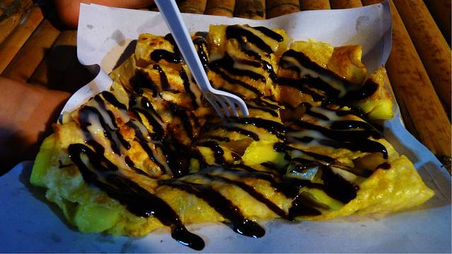 周末市场人依然热闹,点了粉丝和芒果汁,三人又吃了起来,然后周末市场是不让骑车的,媳妇叫我推车过这条街,不然要绕一个大圈,回到Nat Len Boutique Guest House.