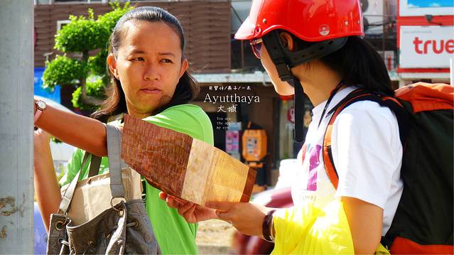 在高速路边,我们问路上的行人,这里是Ayutthaya吗,现在我们离火车站远吗,我们要怎么到火车站,因为只有到了火车站,我们就会有方向感,,路就基本上都知道个大概了,因为这里的地图我们研究过,路人们很是热心,最后我们和一个七座的司机谈价他要200B带我们,最后我们谈好价格100B,也就人民币20块钱左右吧,但我还是嫌贵了,我觉得吧,这里到火车站50B就够了,再说大城消费也低,这时我们带出来的18000B的泰珠只剩2000B了,准备大城用1000B,曼谷用1000B