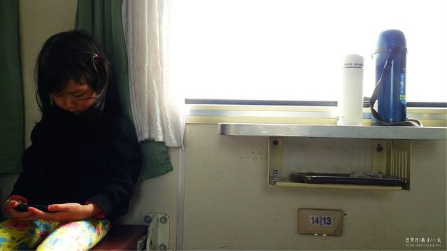 在家炒了两个小菜,三碗饭,草草吃了一餐,坐上公交,再上火车,开始我们的旅程,伟大的中国铁路,我提前了十来天可订到的卧铺票还是全上铺,没什么好说的,只能赞叹中国铁路,牛,,,,,,我们将在这上面渡过22个小时,小家伙很喜欢,不停的爬上爬下,乐此不疲。