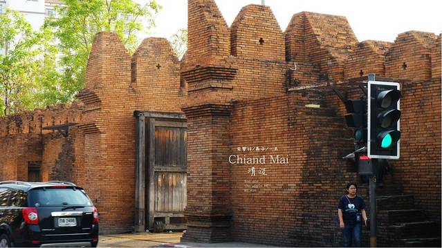 经过塔佩门,第一天来清迈本想凌晨6点到塔佩门来三个伟岸的身影,可因为买去大城的车票,耽搁了,那天8点到塔佩门已很多的人在做泼水节的仪式,所以今天无论如何,我们要停下车在塔佩门留个合影。