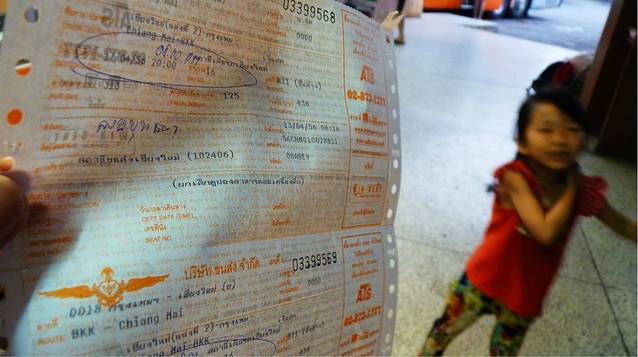 4月13号,泼水节,到达清迈的NCA站,凌晨5点,阿卡车站就在边上徒步几分钟就到了,我们要买17号去大城的车票,有点失算,没想到泼水节车票这么紧张,问了很多窗口,没有到AYUTTHAYA大城的车票,私人的倒有,但这怎么叫人放心,出门一些细节,一些全安还是要特别的注意的,汗都找出来了,终于和一对学生情侣一起找到一辆去曼谷的车在大城路边让我们停下,但学生情侣就没有这么好运气他们是16号去曼谷,没有票,只有去坐私人的车了,谁让我们泰国新年过来凑热闹呢,打个电话给北京三个伙伴告诉他们车紧张,在哪个窗口,因为我们的时间到行程是一样的,只是他们去曼谷去美功,水上市场,我们去大城,这其间,女儿就在这么一个陌生的车站守着我们的行礼,我们买好票过来"宝贝,坐双条车,我们去塔佩门徒步横穿古城",