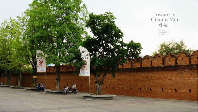 4月14号,一大早三个人出来徒步,这时护城河边上静悄悄的,谁能象想过4,5个小时后这里又是一片战场呀,早上的清迈,真是小清新,护城河两边黄色的树,,红色古城墙,人们用水泵往河里灌水,直到灌满护城河,好让泼水节有足够的水,WAT LOK MOLEE洛莫利寺,WATMONTHIAN孟天寺 ,WAT KUAN KHA MA古卡麻寺,这三个寺就在我们宾馆附近,所以一大早的计划就是徒步这三个寺,清迈的寺院基本上都是6点钟开门,孟天寺和古卡麻寺各有各的精致,一个一个大佛就在门口,一个是关于马的寺庙,