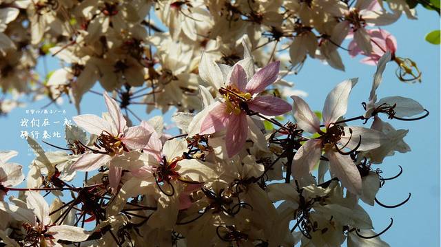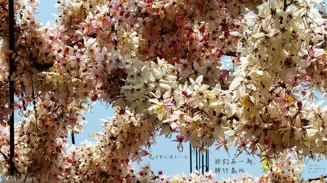 路边的美景不断,刚开一会儿,路边的这棵花儿,又不得不让我们停下来,多美呀,又让我想起了那首"《梨花又开放》
