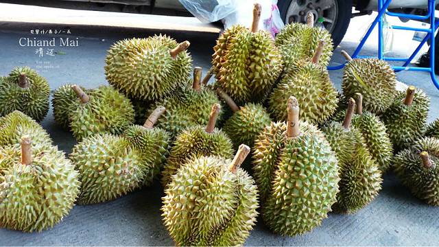 路经一个拉着小车在路边买榴莲的大娘,来泰国还没吃过榴莲呢,是不是这个时间段不是出榴莲的时节呀,好少榴莲,下车,三人叫大娘挑个好点的,三人就坐在路边,吃榴莲