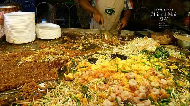 走出小巷,街上是热闹的人群,这里就是塔佩门到帕邢寺的周末市场,三个人一起喝一杯椰子汁,吃一份的猪纣饭,三人买两串的烧烤,女儿拿着三个人吃,吃一盘加豆牙但不加虾的粉条,加虾滴贵,就这么一路吃过去,吃到契迪龙寺附近时,这里有设了一个舞台有小朋友的表演,很多人们坐着看,媳妇和女儿也坐下来,把目光对准了这里,我很想看看契迪龙寺的夜晚是什么样的,就让她们看表演我去契迪龙寺。