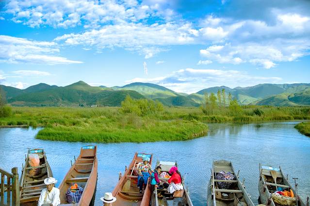 云南,更像是一个梦开始的地方,梦里的云南有蓝天、有白云、有高山、有流水、有明媚的阳光、有悠然的古镇、更有看一眼便无法忘怀的湖光。