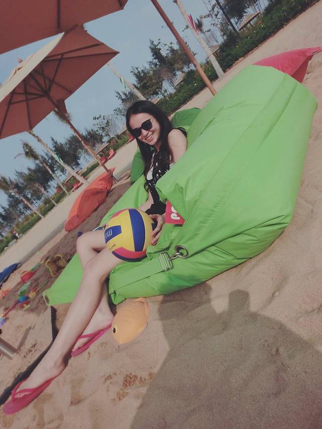 全身的黑绿搭配出来游泳!