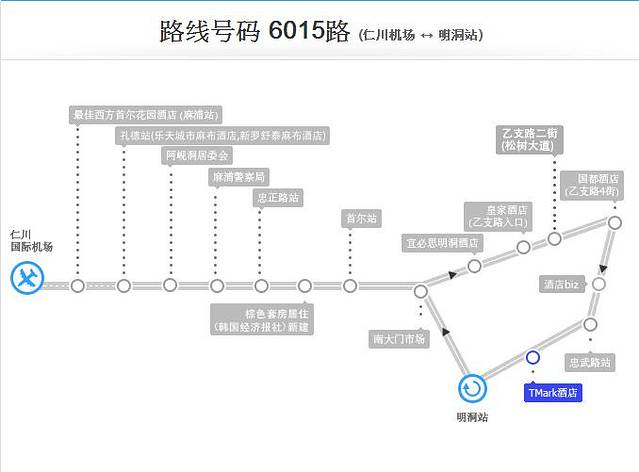 1、机场大巴6015路(仁川国际机场——明洞 世宗酒店)
