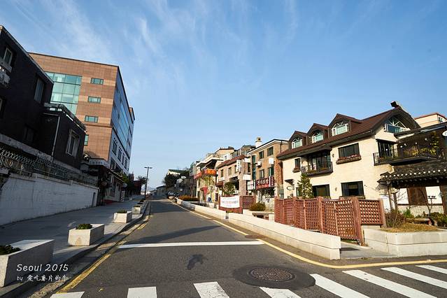 “北村”是指景福宫和昌德宫之间的区域,这里遗留有许多韩国古代传统样式的房屋,差不多有600年的历史,因此得名韩屋村。这里在朝鲜时代是两班贵族居住的地方,后来大部分房屋经过翻新,现在仍有许多居民在这里生活居住,所以村子里很多地方都有“保持肃静”的提示。整个北村安静古朴,散发着一种传统的美,以至于《冬季恋歌》、《绅士的品格》等许多韩剧都来这里取景拍摄。漫步在这干净整洁的小巷中,看着向远处延伸的青瓦红砖,你的心里会感受到一丝特有的淳朴和温馨。