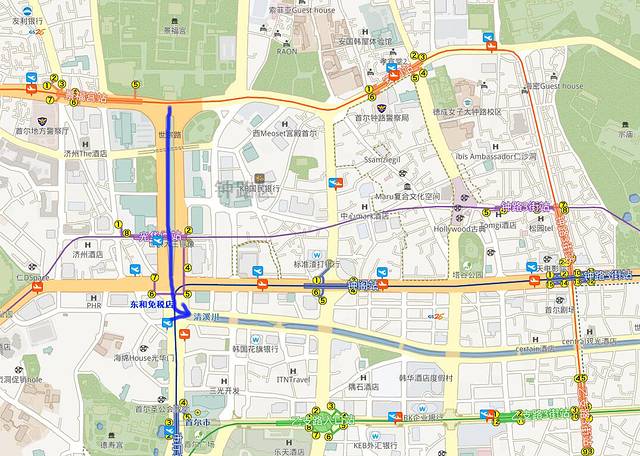 可以乘坐地铁,或者沿着清溪川一路走过来