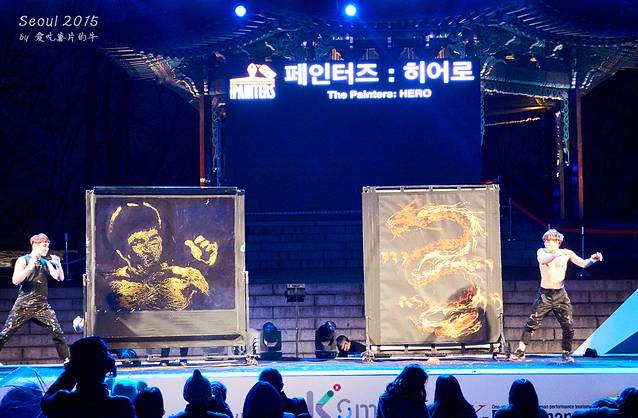 在南山塔下免费欣赏了一场韩国有名的“HERO涂鸦秀”。4个韩国欧巴一边表演一边画画,开始看似随意的涂鸦,到最后一刻会变成“迈克尔杰克逊”、“李小龙”等画作,整个过程非常精彩!