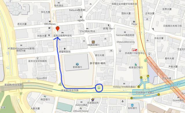 我们预订的明星酒店明洞2号店,离6015大巴的TMark酒店车站非常近