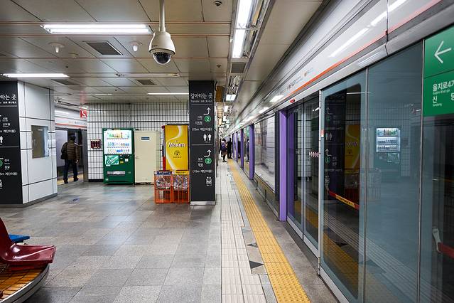 4、仁川机场铁路--弘大入口(站站停的3750韩元),换地铁2号线---乙支路口下车,就是明洞商圈的最北边,除了地铁就是乐天免税店(这个免税店是人最多的)。总之地铁标识还是比较清楚的,就是有些地方没有电梯(和国内一样),带着大行李不太方便。