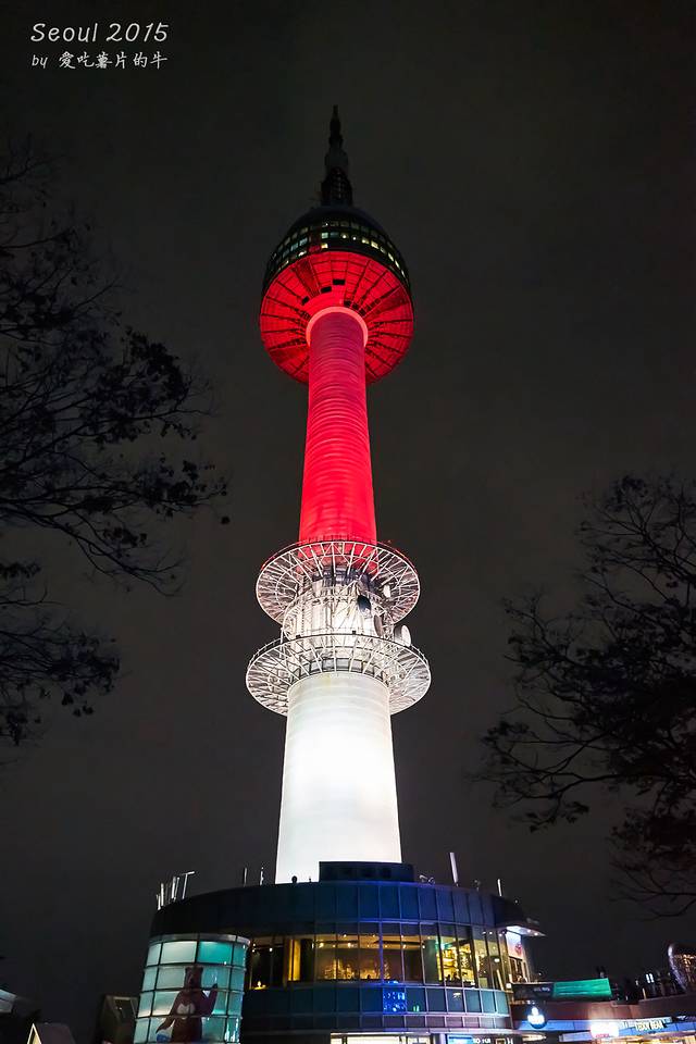 N首尔塔值得一提的是美丽的照明,10%(15亿韩元)的费用都用在了照明上。利用最新LED技术设计的照明根据季节和每个不同的活动照射塔外观的色彩和曲线都随之变化。