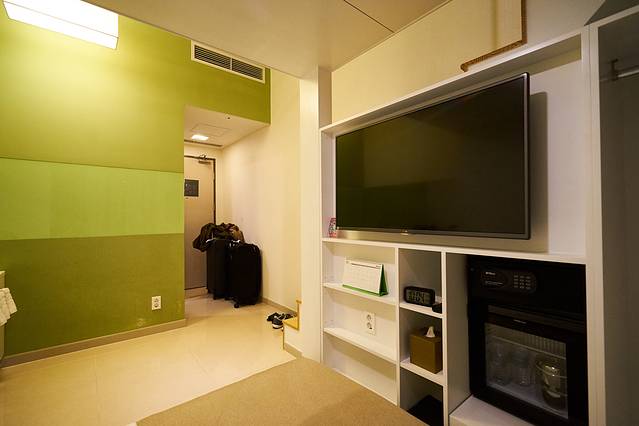 第一天到韩国已经很晚了,所以并没有什么游玩计划。下午15:45从关岛起飞,晚上7点半到达首尔仁川机场,出关后第一件事就是在出口大厅的便利店买Tmoney卡也就是交通卡。然后找到5B或12A出口乘坐6015路机场大巴前往明洞的酒店,从机场乘坐大巴到明洞大约需要一个多小时,我们最后在“TMark酒店”车站下车,步行5分钟就到达我们预定的酒店——明星酒店明洞2号店。