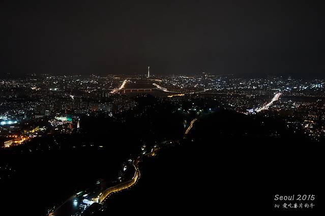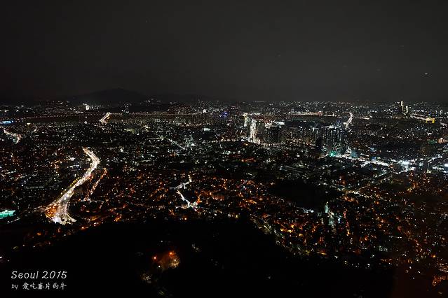 从首尔塔的窗户向外看去,整个城市的夜景尽收眼底,远处的汉江和江面上的大桥也清晰可见!