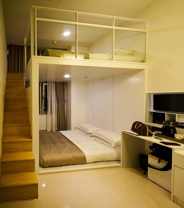 事先知道明洞的酒店房间比较小,所以特意订了一间带阁楼的,这样每人都有一张床,这也是我们选择明星酒店明洞2号店的一个原因