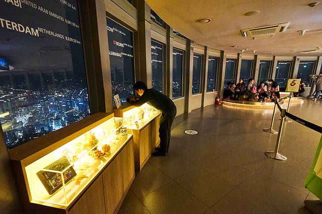 塔顶2层的卫生间被称为“天空卫生间”,因为隔窗一望便能将首尔的景色尽收眼底。