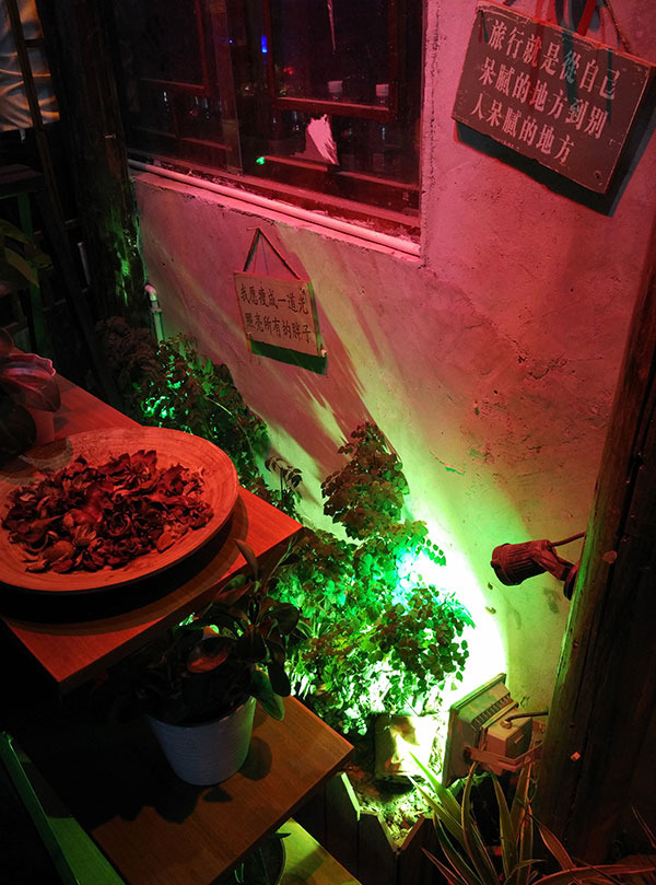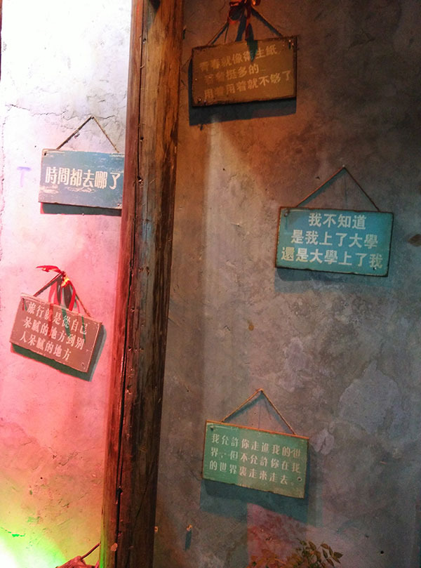 西塘有很多酒吧,这些酒吧都各有特色。这家酒吧墙上的话很是搞笑让我忍不住停下来一句一句读下去。