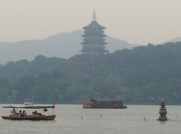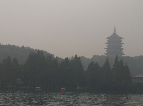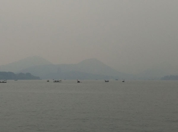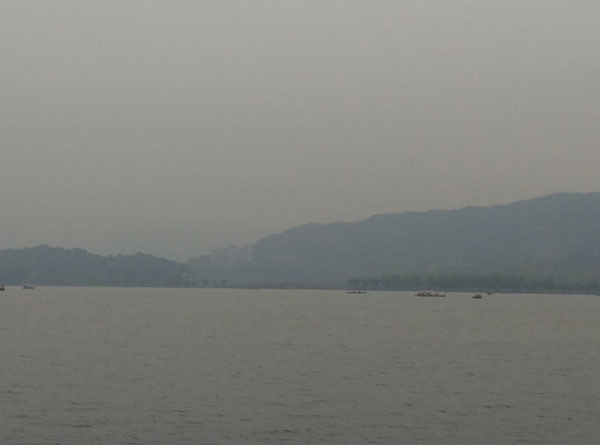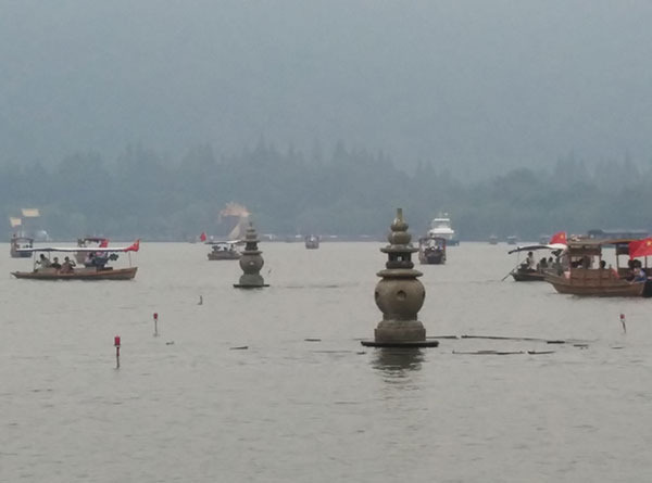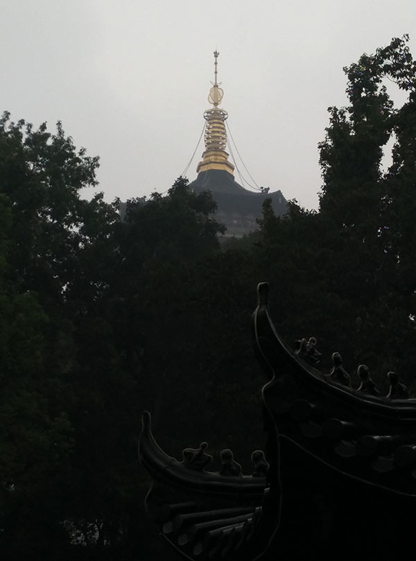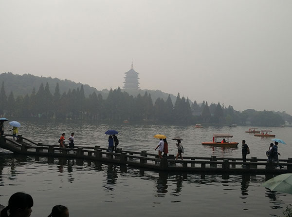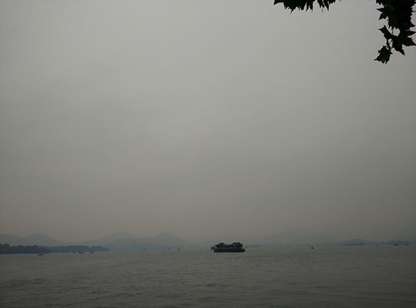 图为西湖,因为当天是阴天所以视野不算特别好,有很多雾气,但是这更为西湖平添了一份神秘的美感!让我不禁想起了白居易的“欲把西湖比西子,淡妆浓抹总相宜”。西湖的美大气,磅礴。西湖本身对我来说就有着非同寻常的意义。本人看到的金庸笔下的江南,古龙笔下的江南,余秋雨笔下的江南,各种描述让西湖本身对我而言已经不再是个实际存在的景观,而是各个文人墨客理想文笔的具象化。