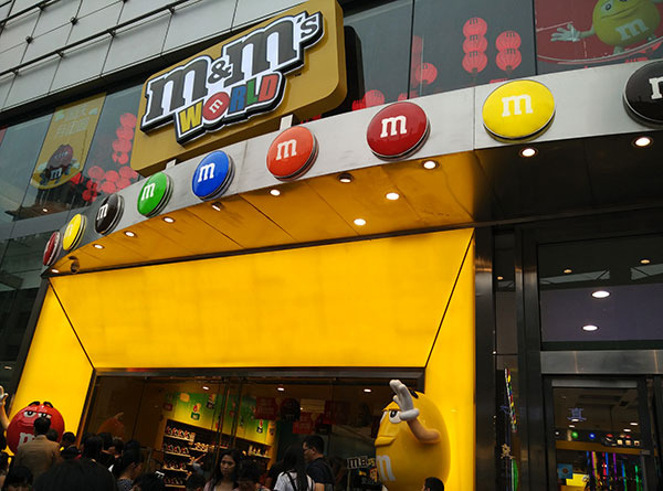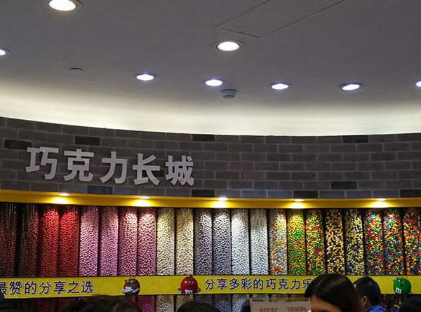 据说这条路上有Eason的店,但是我们没找。不过在这里我们两个人找到了我们都喜欢的地方——上海的m&m’s专卖店。这个专卖店里所有的商品都与m&m’s有关。包括各种纪念品玩具以及生活用品等等。在这里我觉得自己回到了孩时,对我来说这里的一切都充满了吸引力。来到这里,找到了我好久不曾发现的童心。