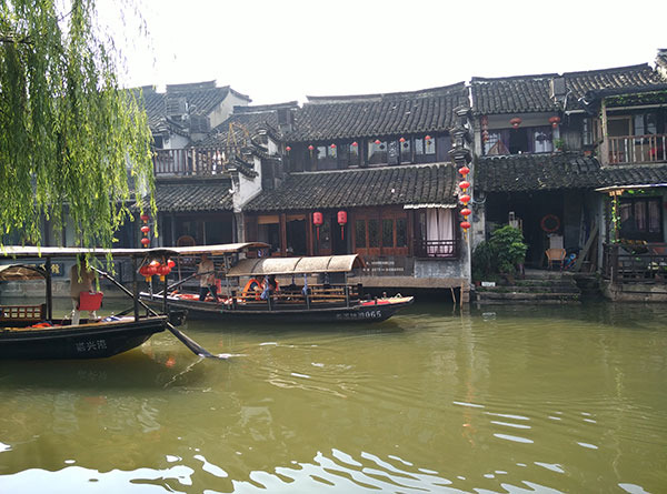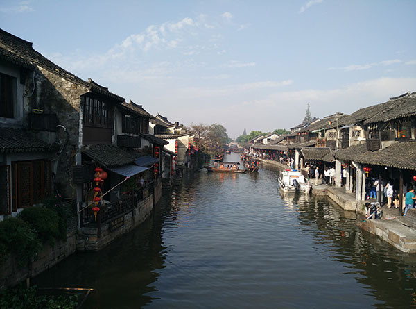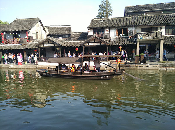 早晨的阳光打在灰瓦白墙上,这才是我想要的江南水乡!虽然因为游人太多的原因不静谧安详,但是这些矗立在水边的房子就像一个个少女身着一袭白纱,站在河边,静静地微笑,注视着游人。
