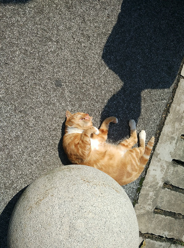 离开复旦的时候发现了这这只在阳光下打瞌睡的猫。周围有一有一圈人在围着它拍照。这只猫的睡姿可爱极了。或许这是复旦人与动物和谐相处的写照吧,这里的一切都那么静谧和谐。