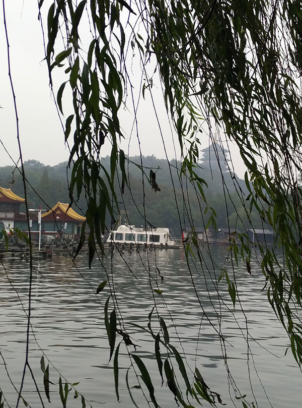 又走了一遭,来到了西湖十景中的柳浪闻莺,我去时已经没有了莺鸟的啼叫,但是,望着满目的柳树,从柳枝下拂叶而过,这种感觉,只有体会到了才知道其妙处!