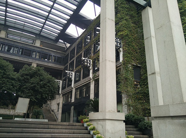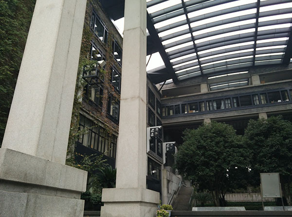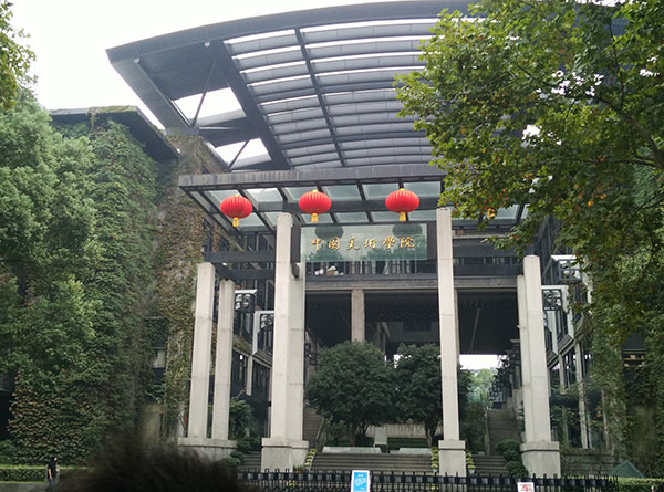离开西湖,我们开始绕西湖骑行,忽然看见一座很有感觉的建筑,仔细一看才发现是中国美术学院。这个学院从外观看来以水墨为基调,以青砖,白色花岗岩,玻璃为主要元素,结合传统文化意蕴和现代建筑风格,与美丽的西湖相得益彰融为一体。