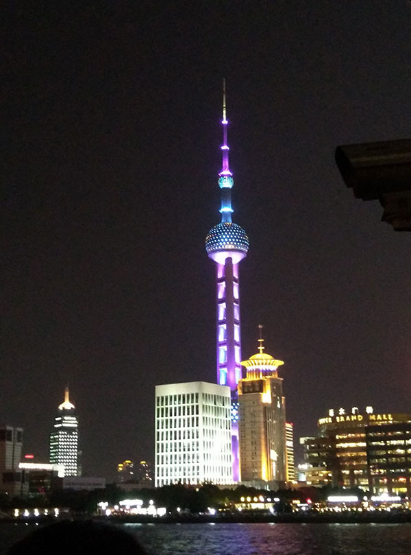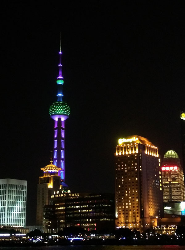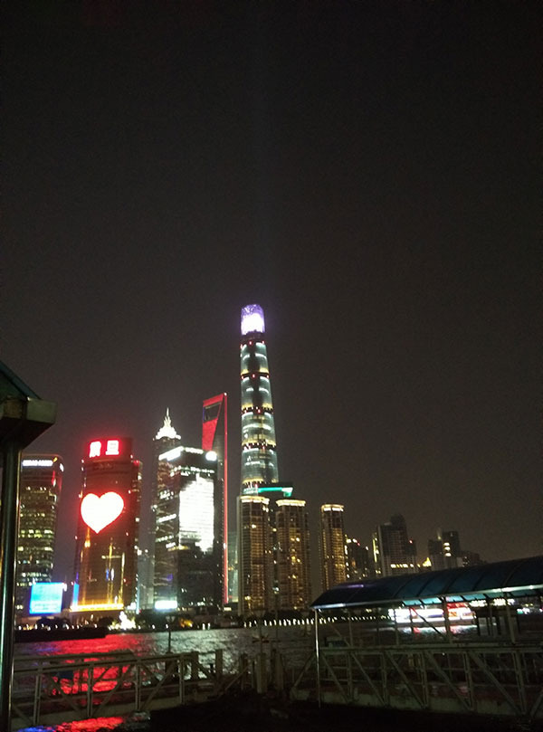 我们从城隍庙又走回外滩,打算坐轮渡去陆家嘴。夜晚陆家嘴分外迷人,上海的繁华尽显于此。坐轮渡横跨黄浦江,价钱大约是3元一个人,很便宜。