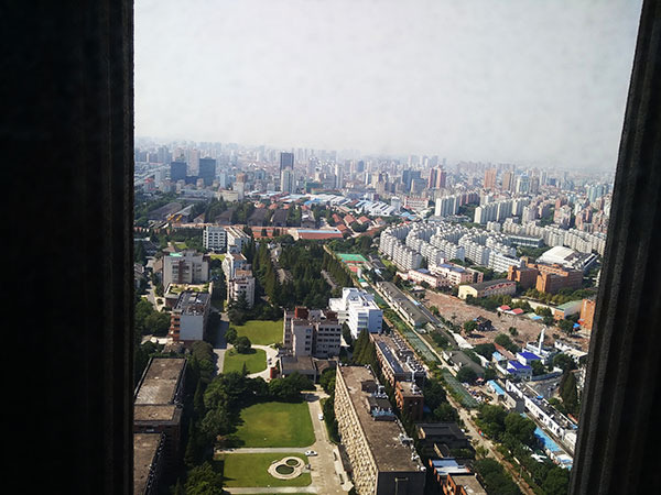 站在复旦光华楼高处可以俯瞰上海,有种至高无上的感觉。据说复旦光华楼是全国高校最高楼。