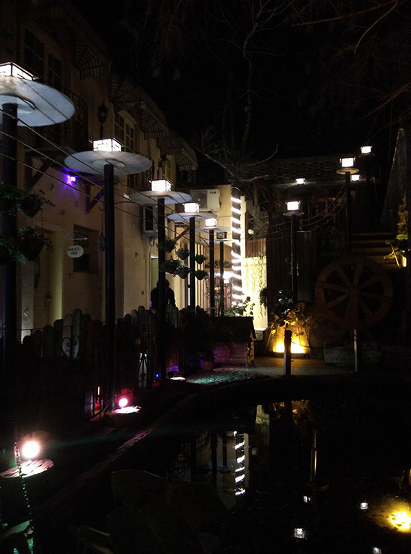 院子里面有一小潭水,周围是吊椅,感觉这里十分悠闲,和外面的嘈杂仿佛是两个世界。